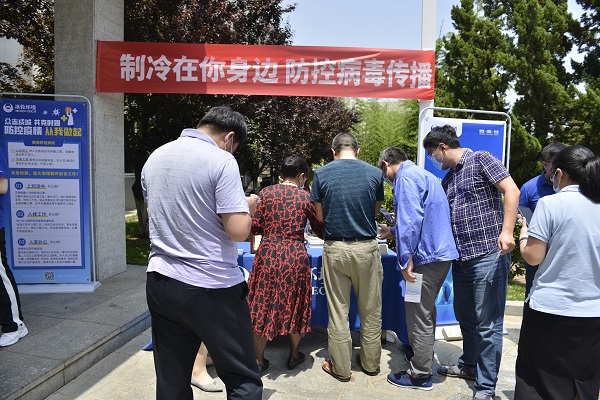 中国制冷学会·科学普及网 6月15日讯 6月11日,云顶国际集团作为中国制冷学会科普及教育基地组织开展“制冷在你身边 防控病毒传播”主题活动,云顶国际环境党委副书记、科普基地主任董大文带领云顶国际职工,走进只楚园区分发资料宣传家用空调自助清洗的相关知识。
